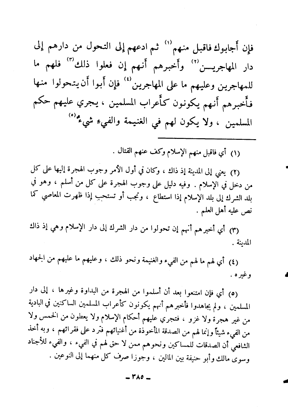 فإن أجابوك فاقبل منهم (1) ، ثم ادعهم إلى التحول من دارهم إلى دار المهاجرين (2) ، وأخبرهم أنهم إن فعلوا ذلك (3) فلهم ما للمهاجرين وعليهم ما على المهاجرين (4) ، فإن أبوا أن يتحولوا منها فأخبرهم أنهم يكونون كأعراب المسلمين، يجري عليهم حكم المسلمين، ولا يكون لهم في الغنيمة والفيء شيء (5)