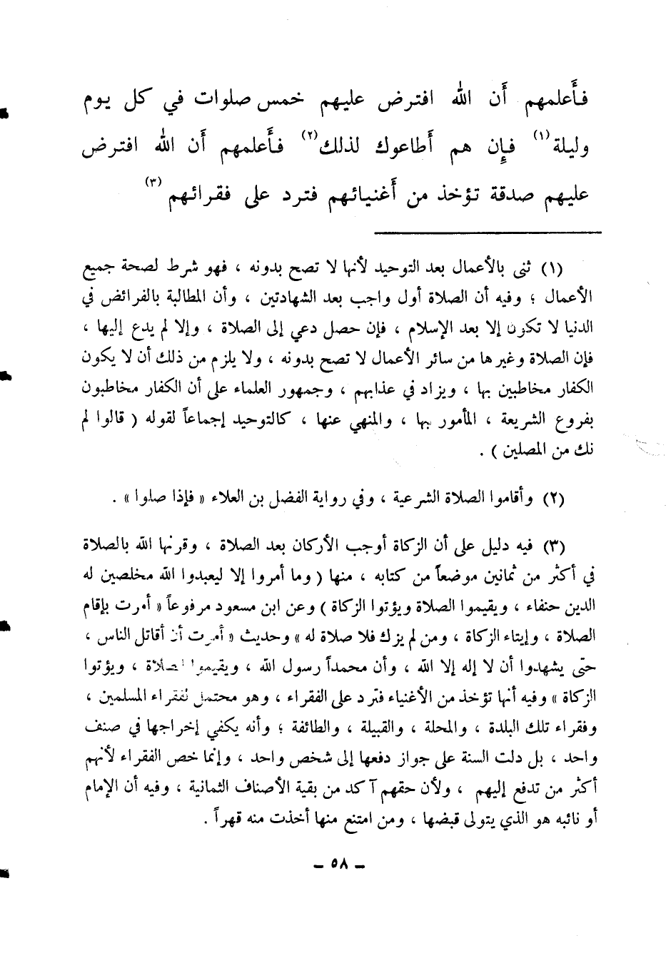 فأعلمهم أن الله افترض عليهم خمس صلوات في كل يوم وليلة (1) ، فإن هم أطاعوك لذلك (2) فأعلمهم أن الله افترض عليهم صدقة تؤخذ من أغنيائهم فترد على فقرائهم (3) ،