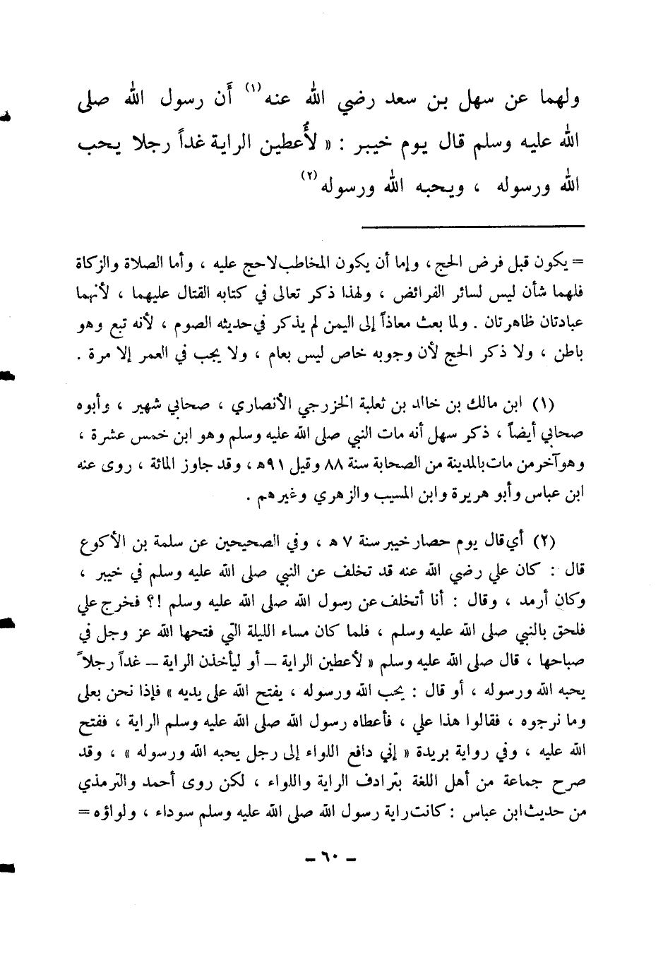 ولهما عن سهل بن سعد رضي الله عنه (1) أن رسول الله صلى الله عليه وسلم قال يوم خيبر: " لأعطين الراية غدا رجلا يحب الله ورسوله، ويحبه الله ورسوله (2) ،
