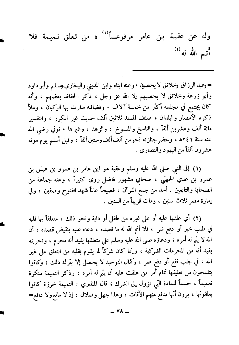 (1) إلى النبي صلى الله عليه وسلم وعقبة هو ابن عامر بن عمرو بن عبس بن عمرو بن عدي الجهني، صحابي مشهور فاضل روى كثيرا، وعنه جماعة من الصحابة والتابعين. أحد من جمع القرآن، فصيحا عالما شهد الفتوح وصفين، ولي إمارة مصر ثلاث سنين، ومات قريبا من الستين.