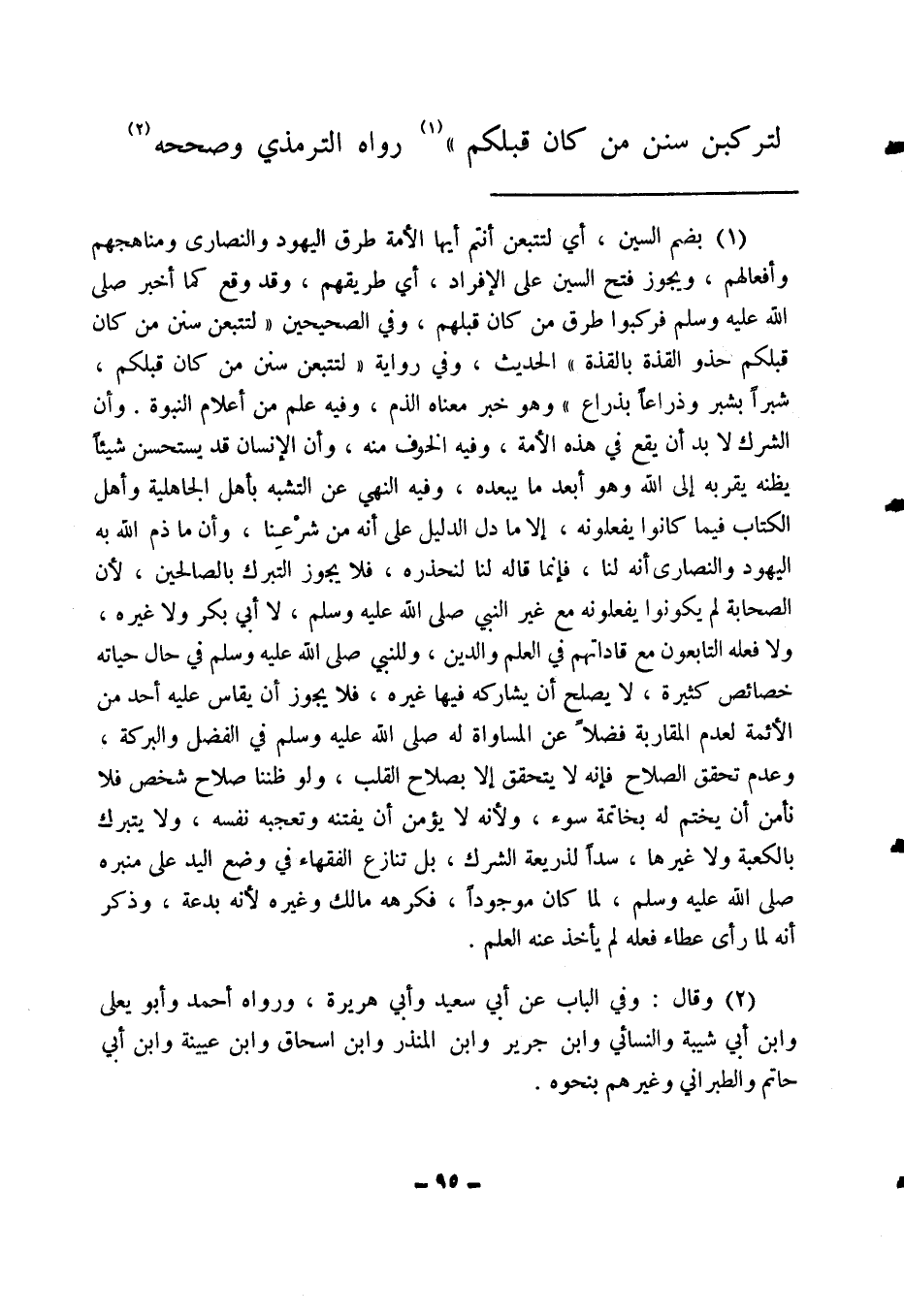 لتركبن سنن من كان قبلكم " (1) . رواه الترمذي وصححه (2) .