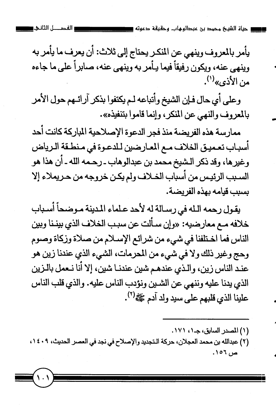2 عبد الله بن محمد العجلان، حركة التجديد والإصلاح في نجد في العصر الحديث، 1409، ص 156.