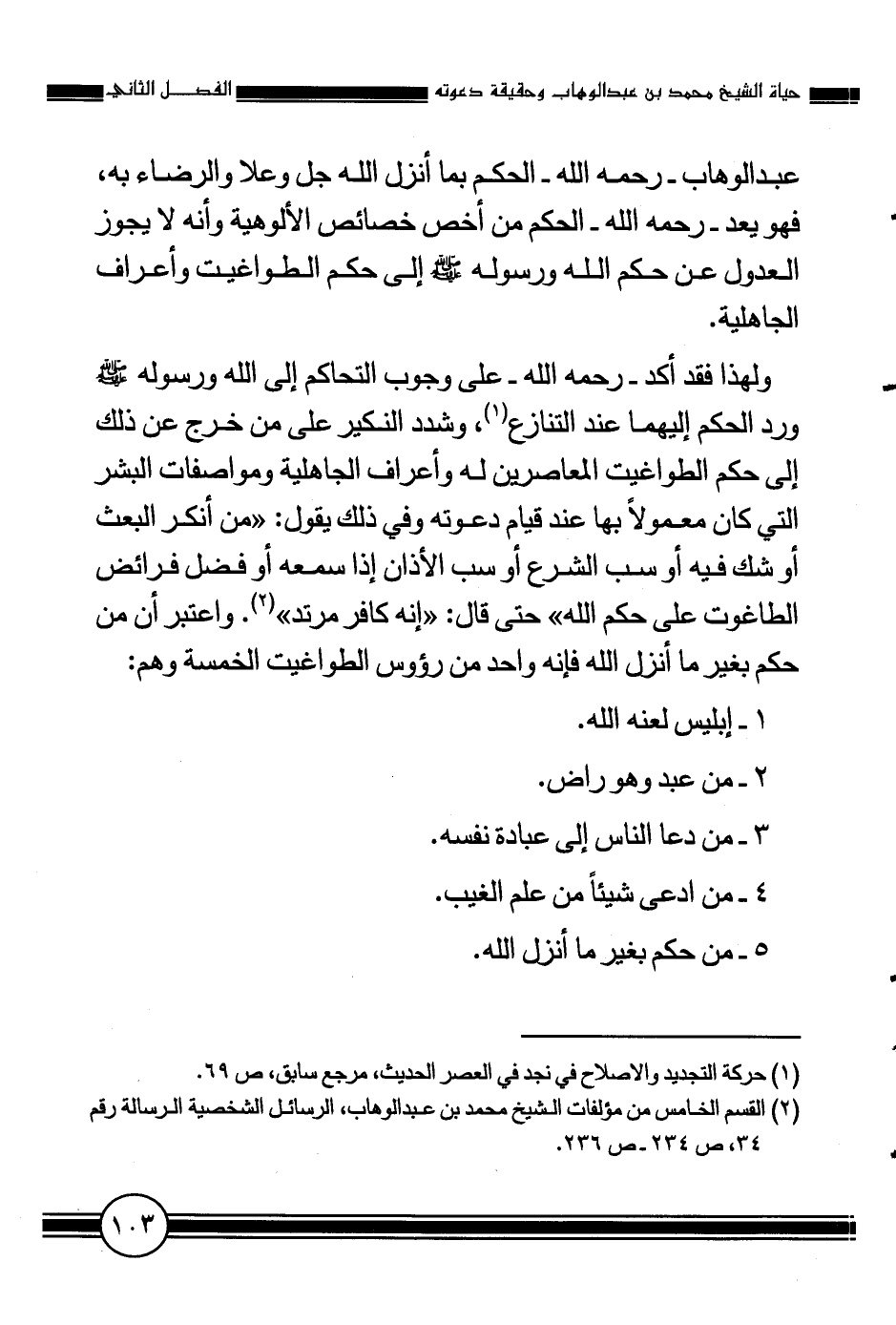 2 القسم الخامس من مؤلفات الشيخ محمد بن عبد الوهاب، الرسائل الشخصية الرسالة رقم 34، ص 234- ص 236.