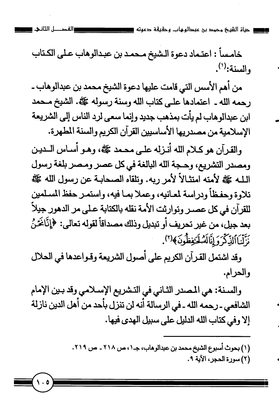 خامسا: اعتماد دعوة الشيخ محمد بن عبد الوهاب على الكتاب والسنة: