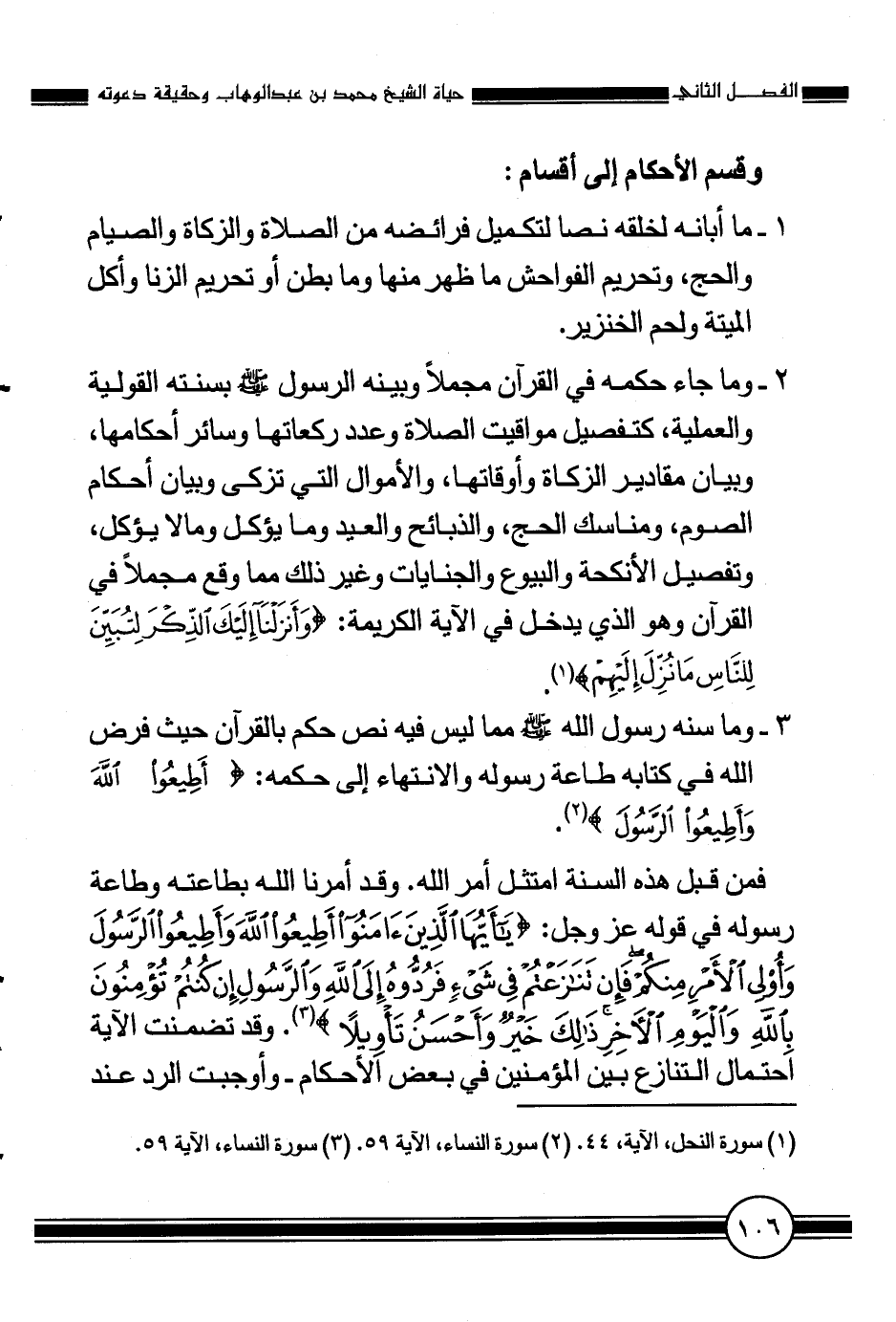 3- وما سنه رسول الله صلّى الله عليه وسلّم مما ليس فيه نص حكم بالقرآن حيث فرض الله في كتابه طاعة رسوله والانتهاء إلى حكمه: {أَطِيعُوا اللَّهَ وَأَطِيعُوا الرَّسُولَ} [النّساء من الآية: 59] .