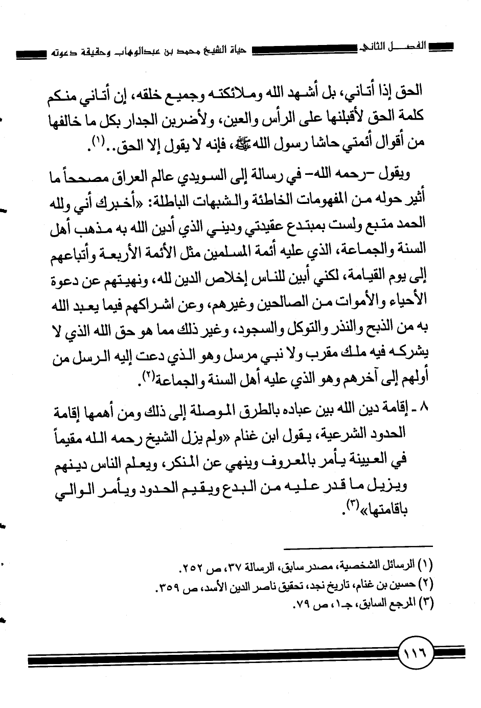2 حسين بن غنام، تاريخ نجد، تحقيق ناصر الدين الأسد، ص 359.