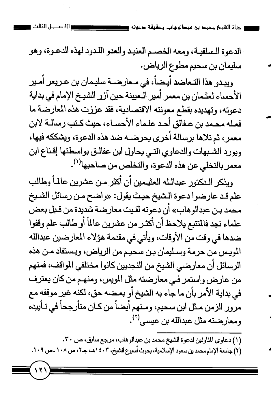 الدعوة السلفية، ومعه الخصم العنيد والعدو اللدود لهذه الدعوة، وهو سليمان بن سحيم مطوع الرياض.