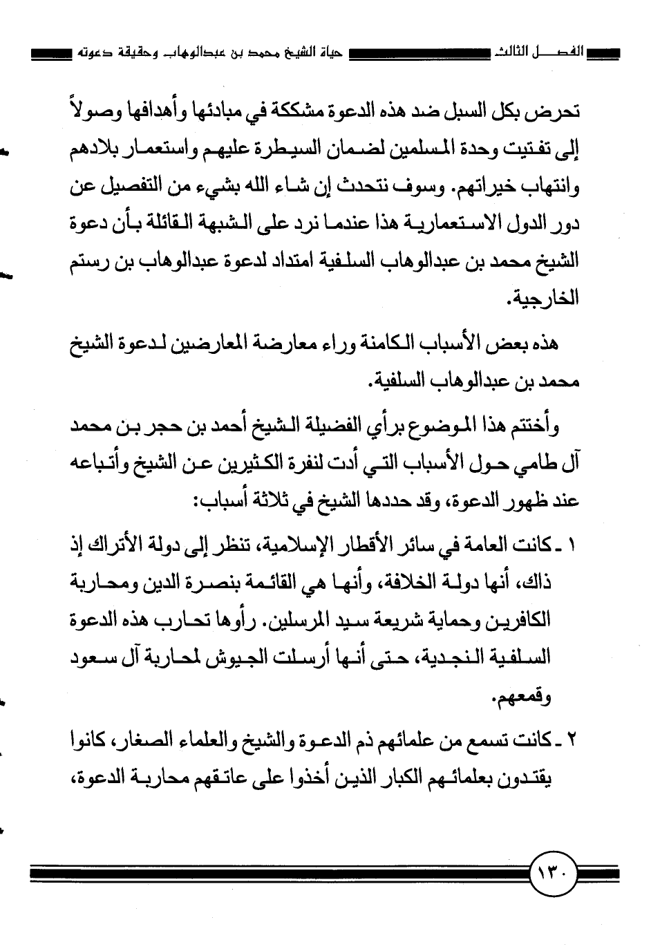 هذه بعض الأسباب الكامنة وراء معارضة المعارضين لدعوة الشيخ محمد بن عبد الوهاب السلفية.