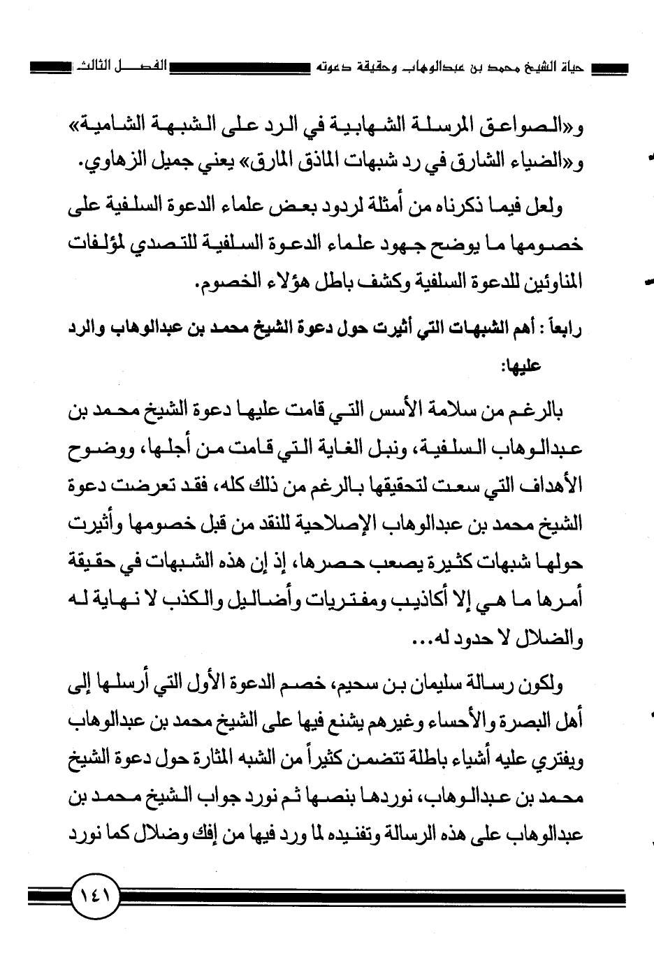 رابعا: أهم الشبهات التي أثيرت حول دعوة الشيخ محمد بن عبد الوهاب والرد عليها: