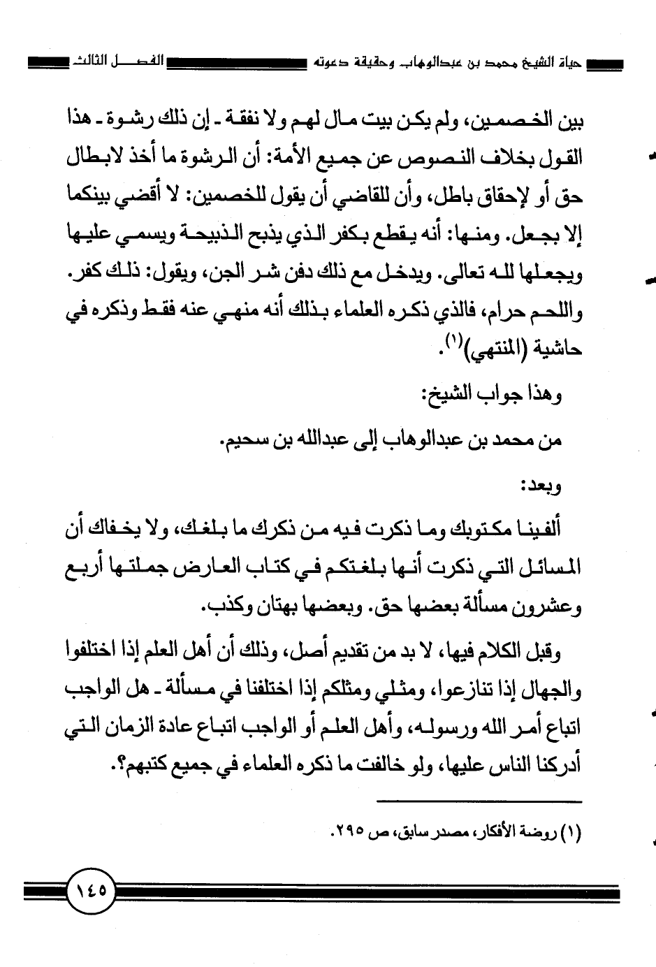 من محمد بن عبد الوهاب إلى عبد الله بن سحيم.
