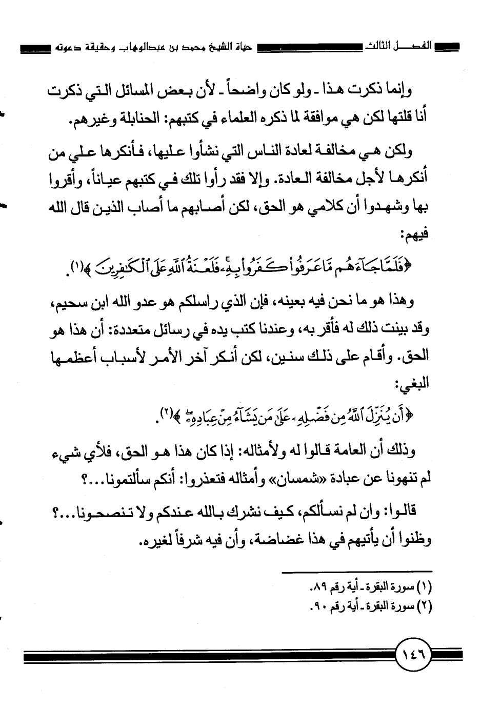 ولكن هي مخالفة لعادة الناس التي نشأوا عليها، فأنكرها علي من أنكرها لأجل مخالفة العادة. وإلا فقد رأوا تلك في كتبهم عياناً، وأقروا بها وشهدوا أن كلامي هو الحق، لكن أصابهم ما أصاب الذين قال الله فيهم: {فَلَمَّا جَاءَهُمْ مَا عَرَفُوا كَفَرُوا بِهِ فَلَعْنَةُ اللَّهِ عَلَى الْكَافِرِينَ} [البقرة من الآية: 89] .