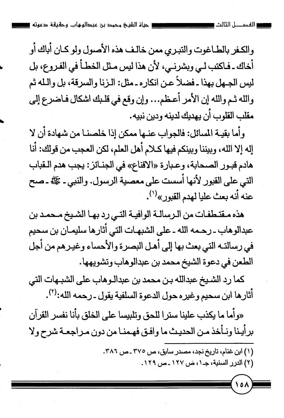 هذه مقتطفات من الرسالة الوافية التي رد بها الشيخ محمد بن عبد الوهاب - رحمه الله - على الشبهات التي أثارها سليمان بن سحيم في رسالته التي بعث بها إلى أهل البصرة والأحساء وغيرهم من أجل الطعن في دعوة الشيخ محمد بن عبد الوهاب وتشويهها.