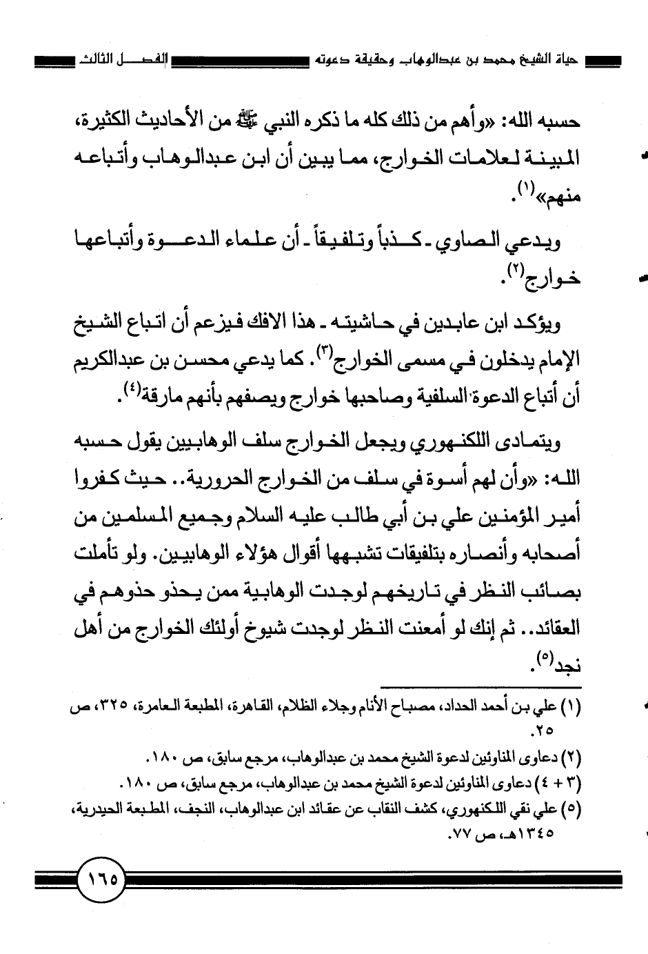 5 علي نقي اللكنهوري، كشف النقاب عن عقائد ابن عبد الوهاب، النجف، المطبعة الحيدرية، 1345هـ، ص77.