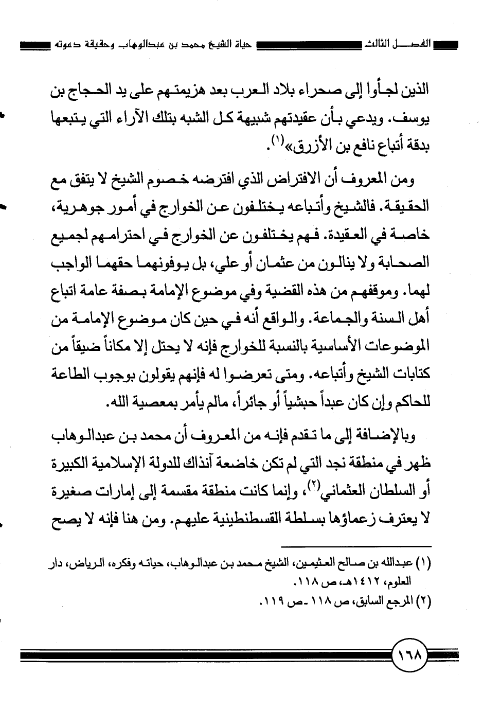 1 عبد الله بن صالح العثيمين، الشيخ محمد بن عبد الوهاب، حياته وفكره، الرياض، دار العلوم، 1412هـ، ص118.