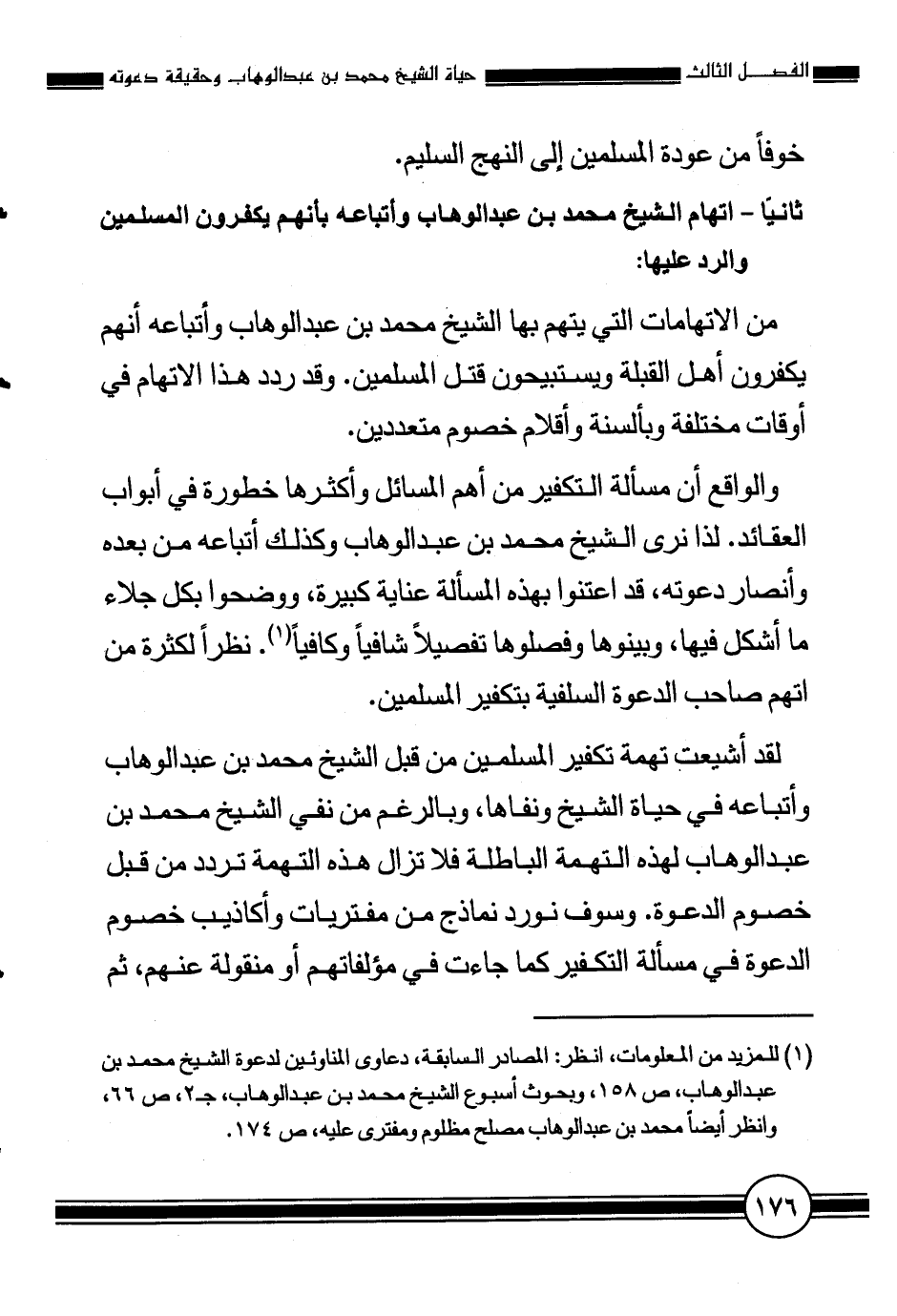 ثانيا- اتهام الشيخ محمد بن عبد الوهاب وأتباعه بأنهم يكفرون المسلمين والرد عليها