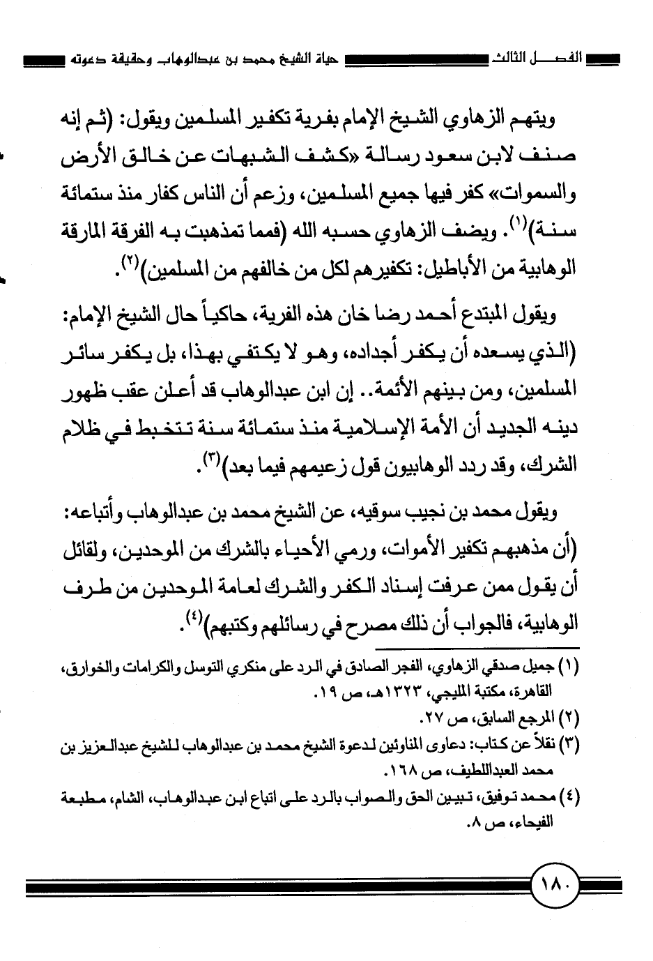 4 محمد توفيق، تبيين الحق والصواب بالرد على أتباع ابن عبد الوهاب، الشام، مطبعة الفيحاء، ص 8.