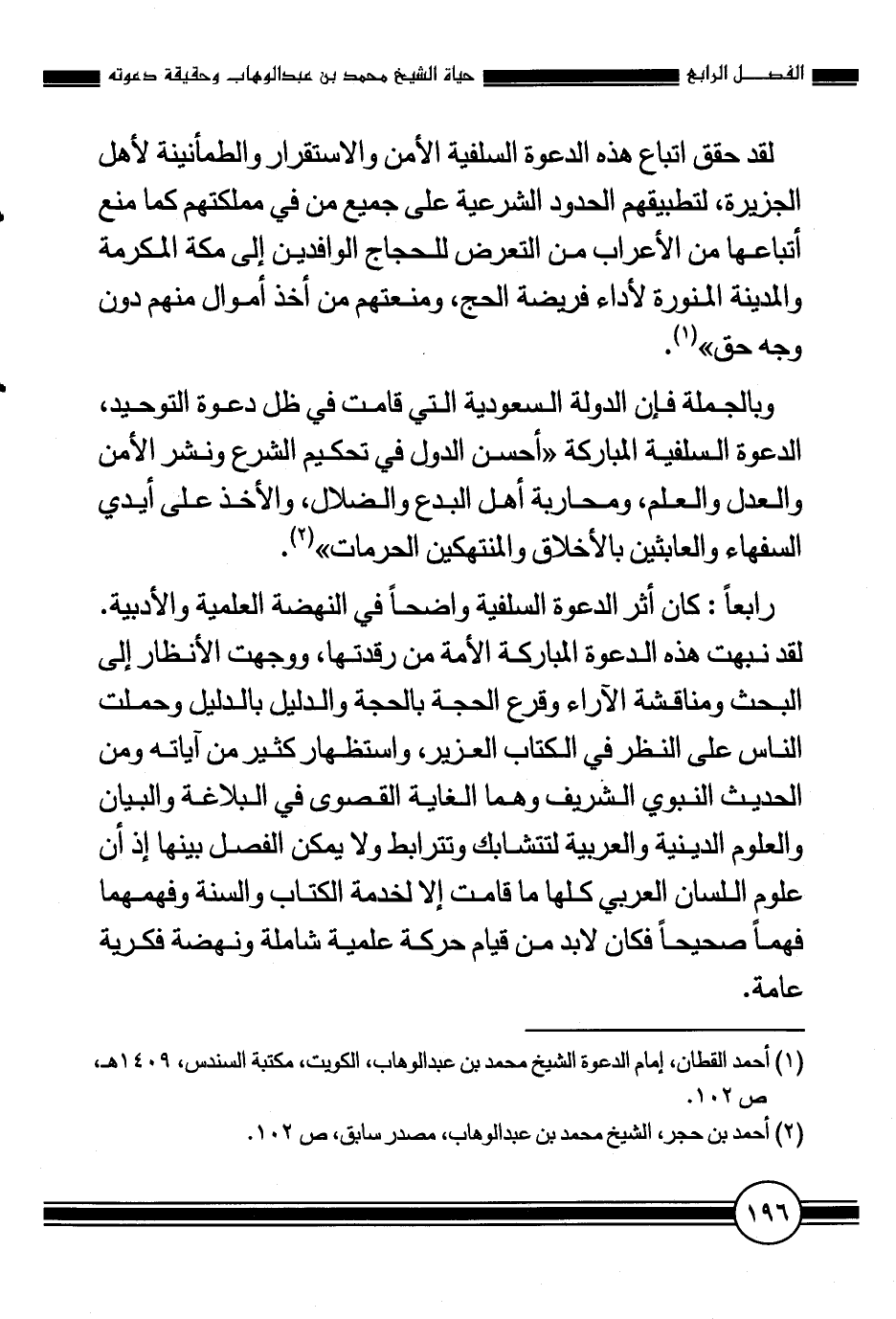 1 أحمد القطان، إمام الدعوة الشيخ محمد بن عبد الوهاب، الكويت، مكتبة السندس، 1409 هـ، ص 102.
