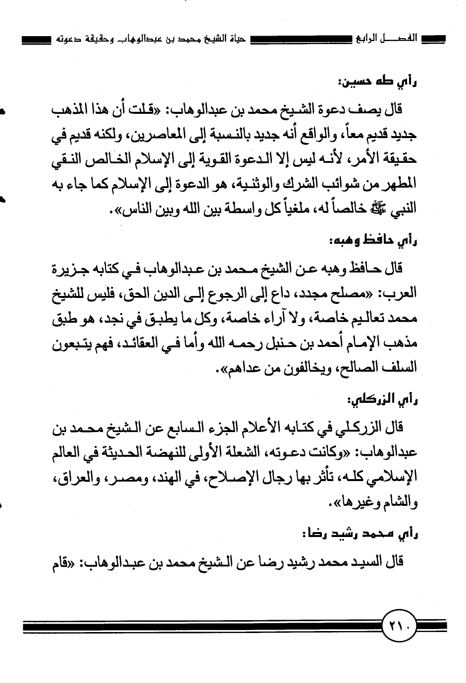 قال السيد محمد رشيد رضا عن الشيخ محمد بن عبد الوهاب: "قام