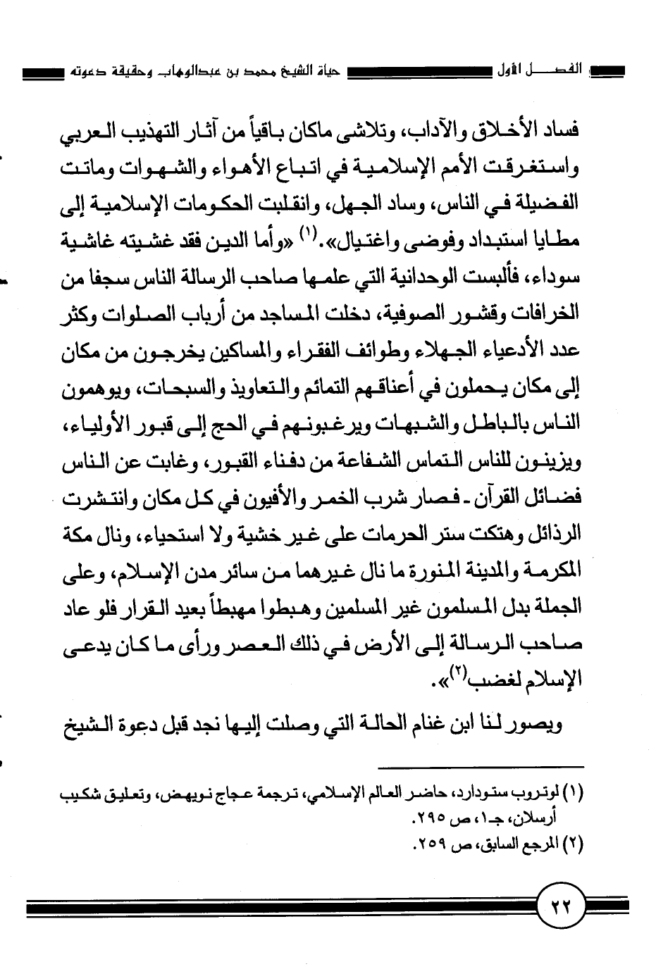 2 لوتروب ستودارد، حاضر العالم الإسلامي، ترجمة عجاج نويهض، وتعليق شكيب أرسلان، ج 1، ص 259.