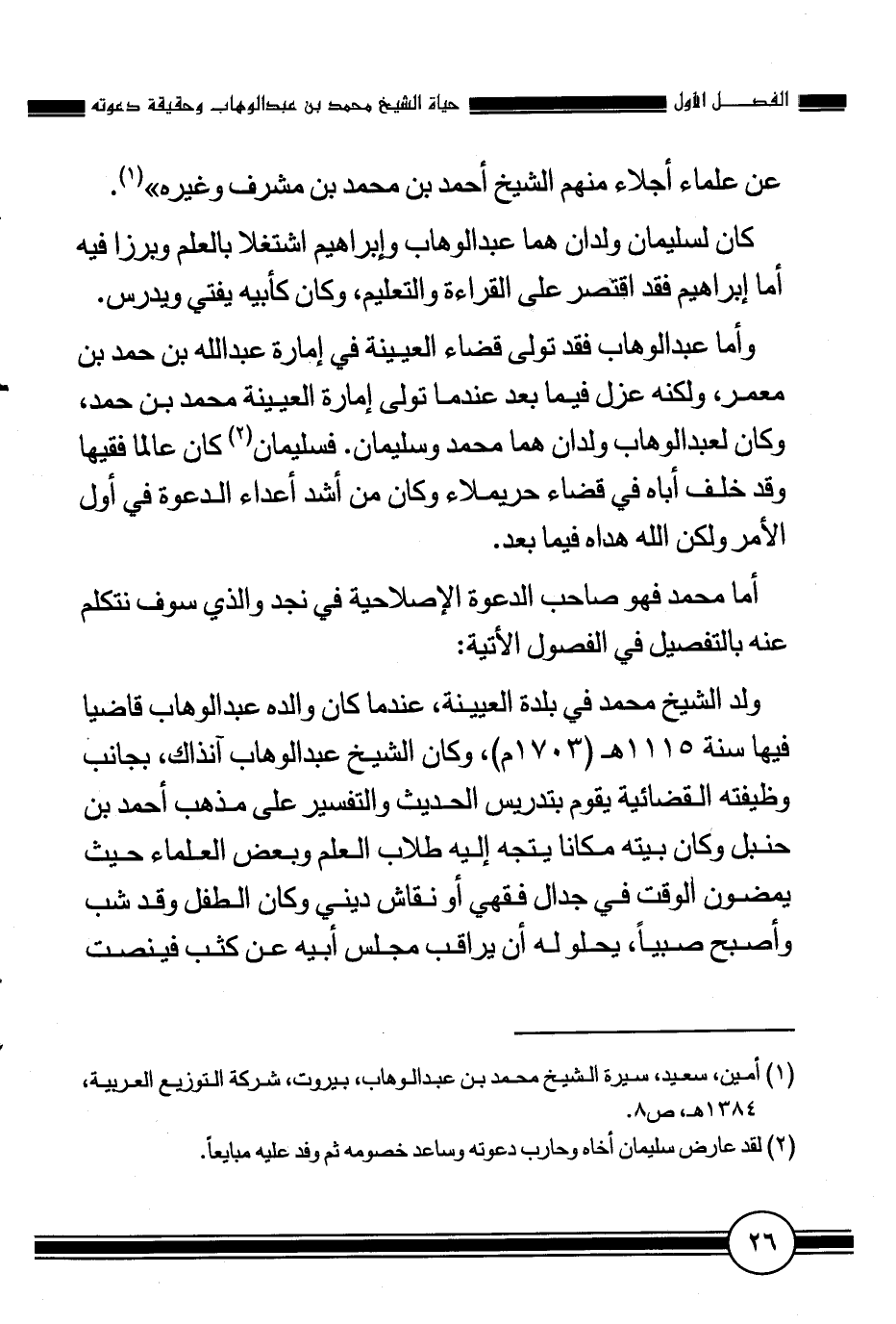 1 أمين، سعيد، سيرة الشيخ محمد بن عبد الوهاب، بيروت، شركة التوزيع العربية، 1384 هـ، ص 8.