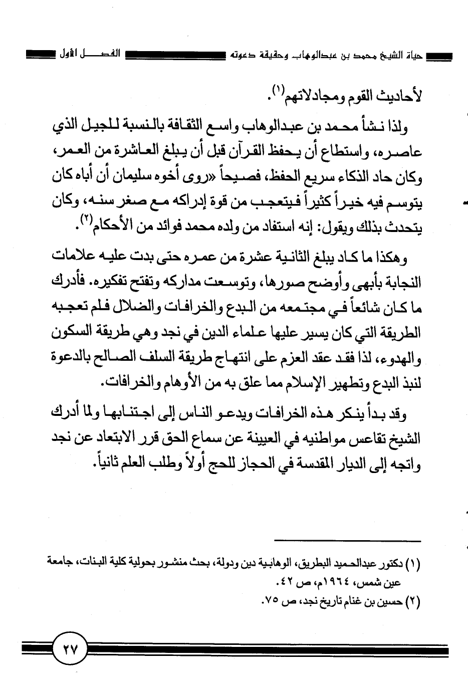 1 دكتور عبد الحميد البطريق، الوهابية دين ودولة، بحث منشور بحولية كلية البنات، جامعة عين شمس، 1964 م، ص 42.