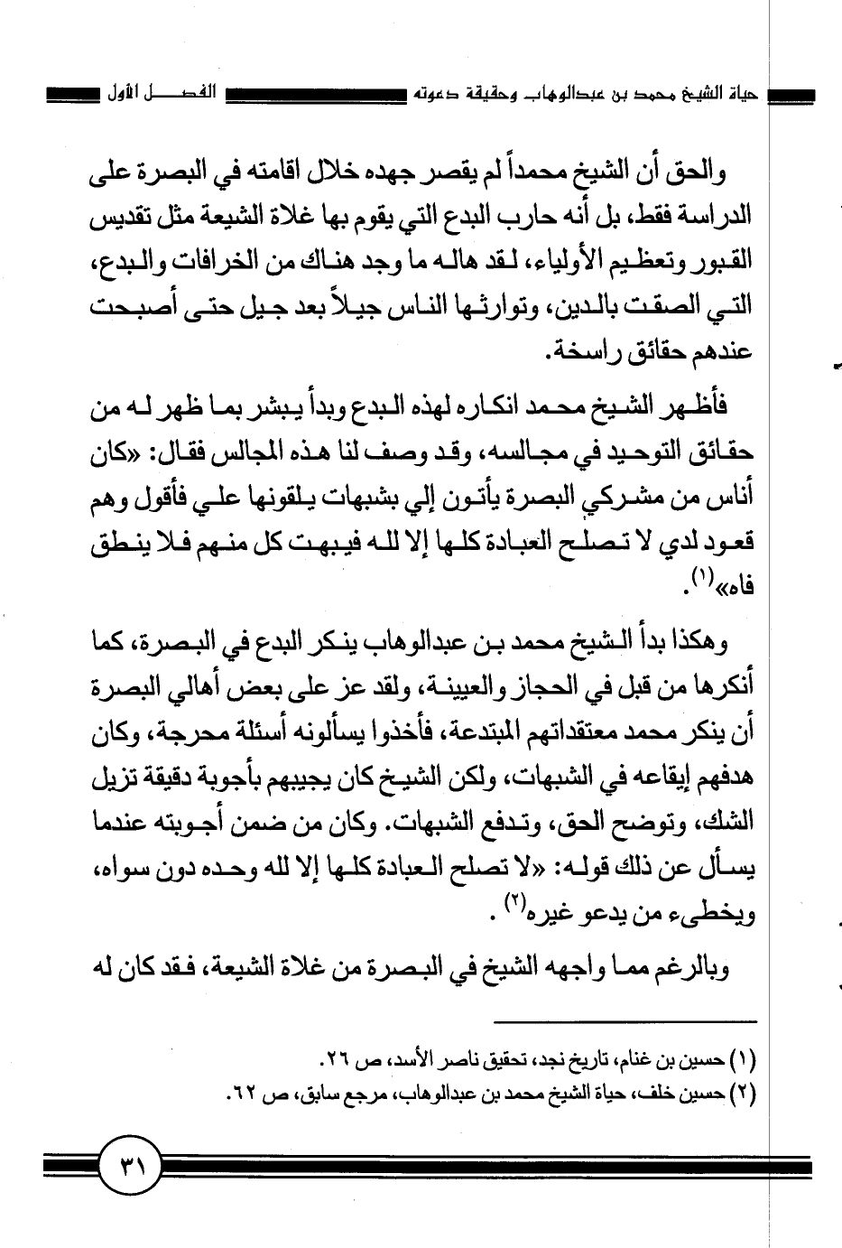 2 حسين خلف، حياة الشيخ محمد بن عبد الوهاب، مرجع سابق، ص 62.