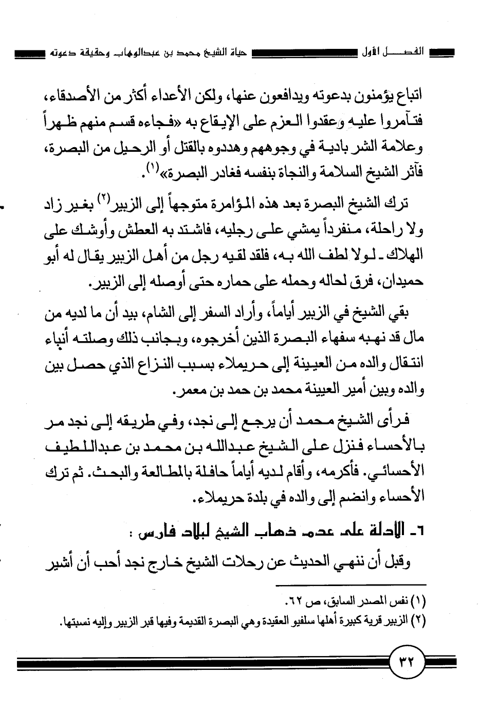 1 حسين خلف، حياة الشيخ محمد بن عبد الوهاب، مرجع سابق، ص 62.