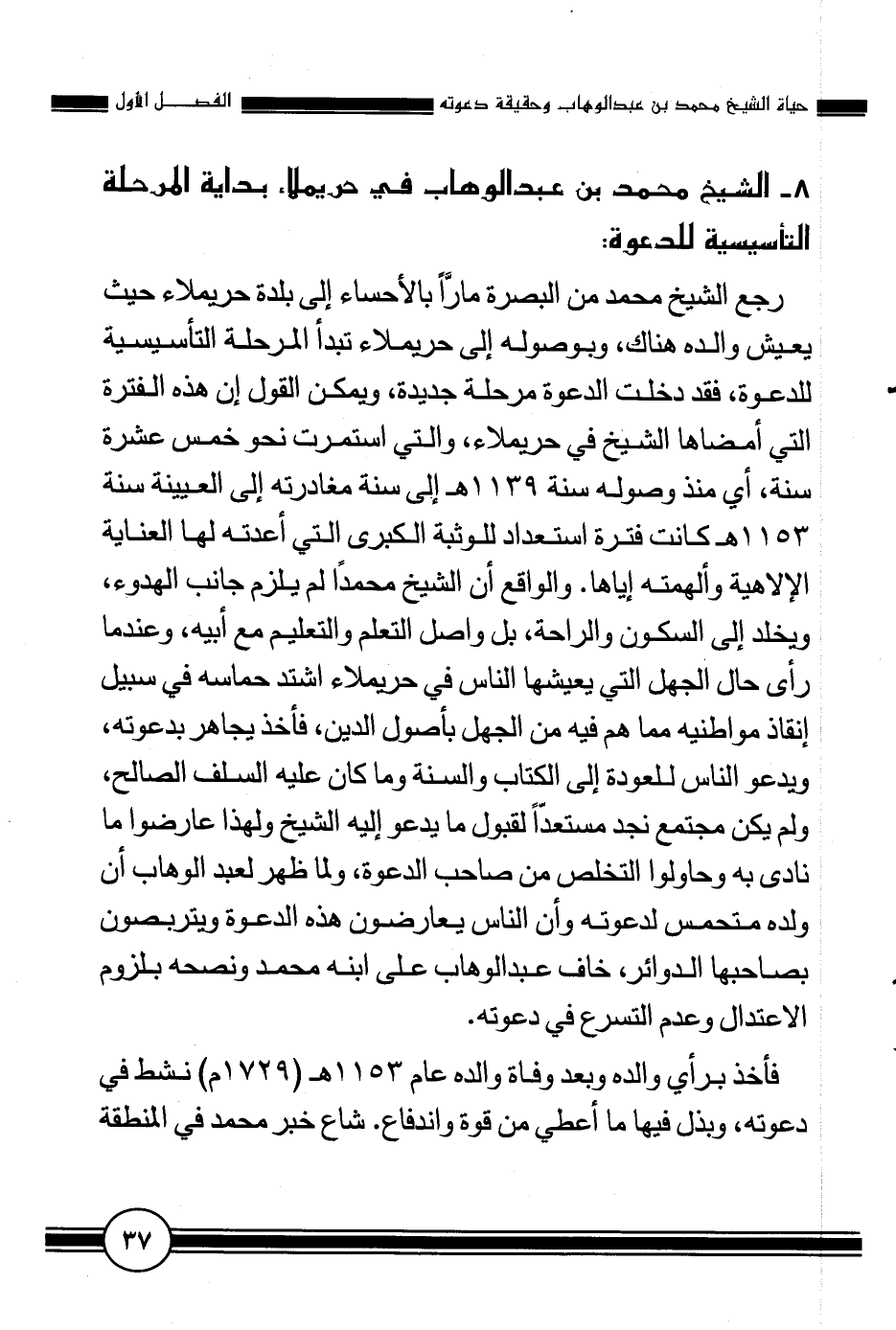8- الشيخ محمد بن عبد الوهاب في حريملاء بداية المرحلة التأسيسية للدعوة