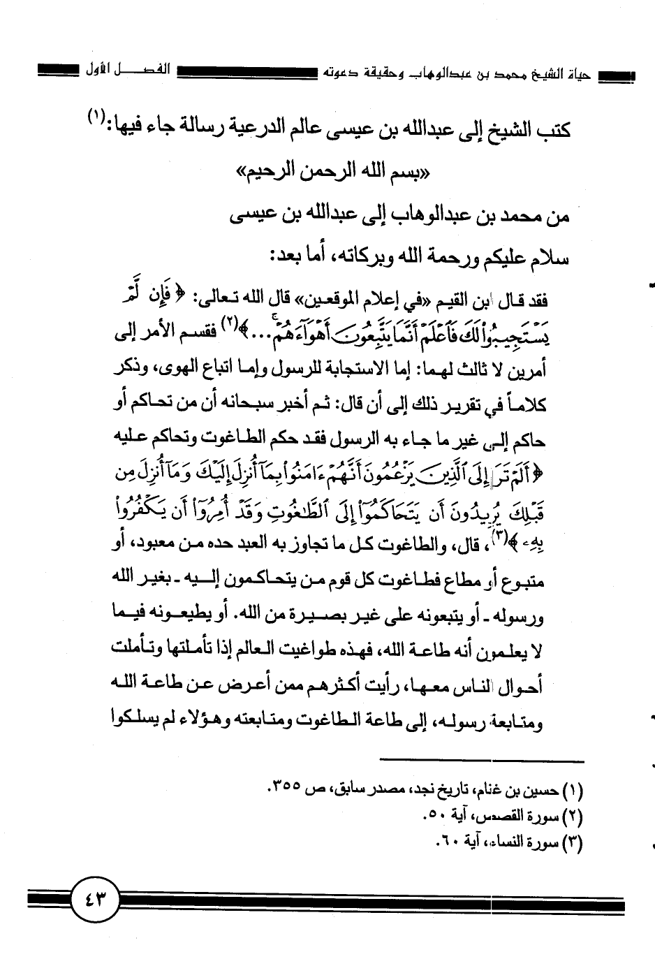من محمد بن عبد الوهاب إلى عبد الله بن عيسى