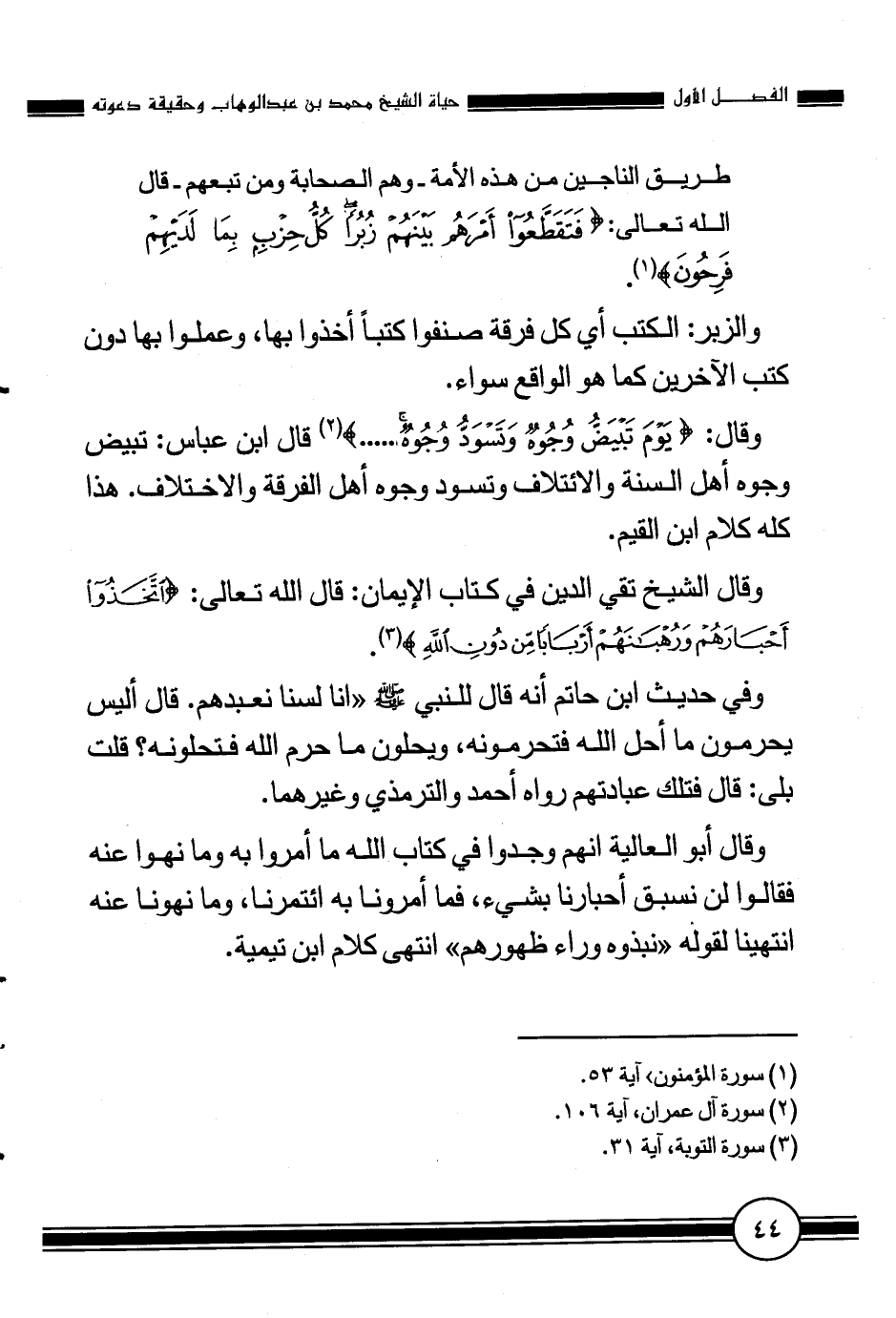 وقال الشيخ تقي الدين في كتاب الإيمان: قال الله تعالى: {اتَّخَذُوا أَحْبَارَهُمْ وَرُهْبَانَهُمْ أَرْبَاباً مِنْ دُونِ اللَّهِ} [التوبة، من الآية: 31] .