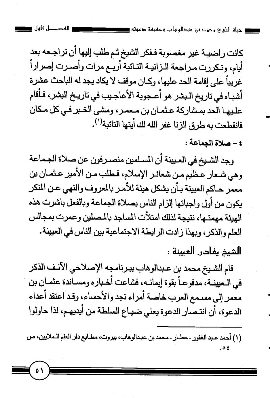 1 أحمد عبد الغفور -عطار- محمد بن عبد الوهاب، بيروت، مطابع دار العلم للملايين، ص 54.