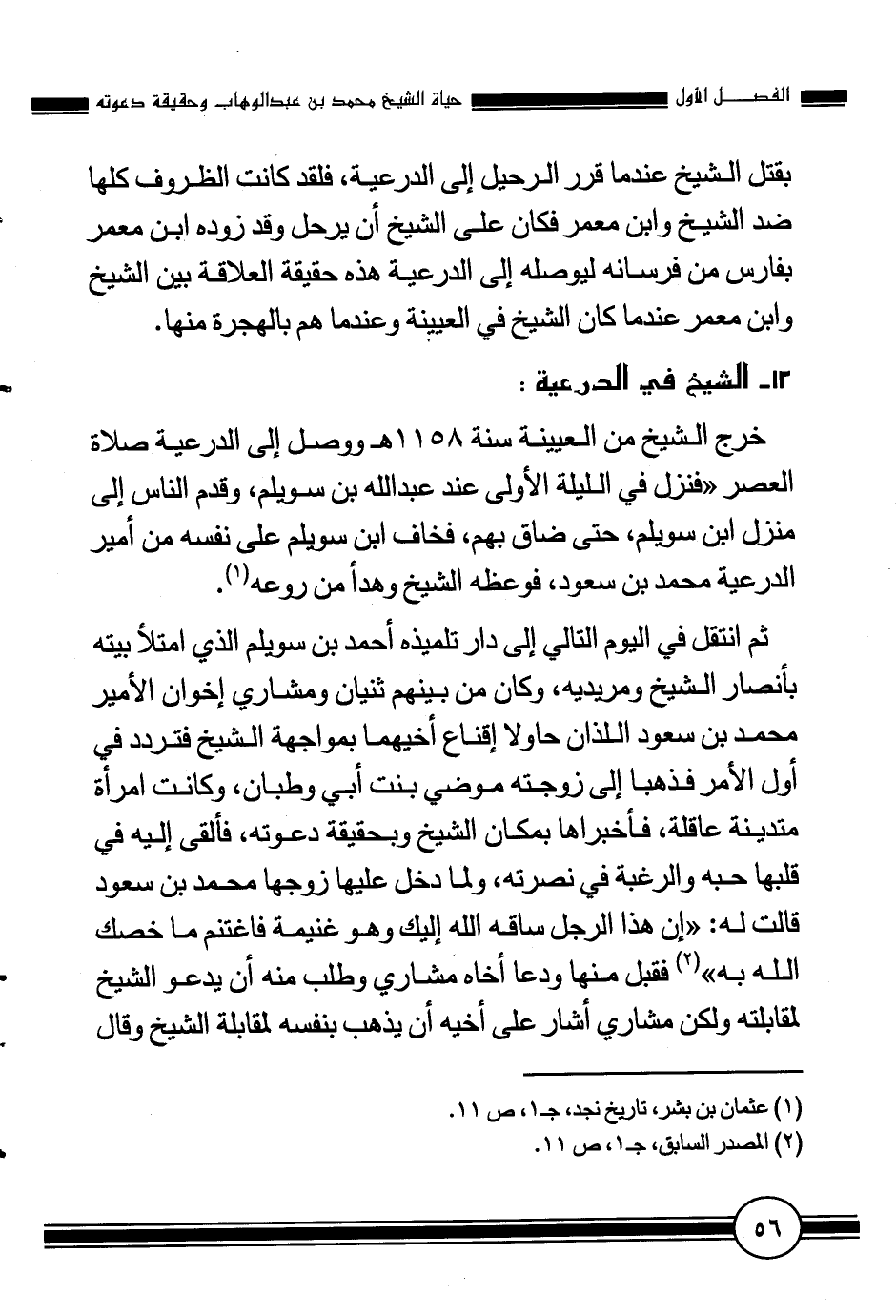 1 عثمان بن بشر، تاريخ نجد، ج 1، ص 11.