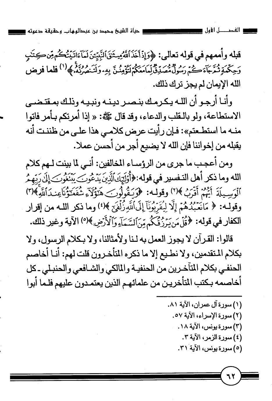 قالوا: القرآن لا يجوز العمل به لنا ولأمثالنا، ولا بكلام الرسول، ولا بكلام المتقدمين، ولا نطيع إلا ما ذكره المتأخرون. قلت لهم: أنا أخاصم الحنفي بكلام المتأخرين من الحنفي والمالكي والشافعي والحنبلي- كل أخاصمه بكتب المتأخرين من علمائهم الذين يعتمدون عليهم فلما أبوا