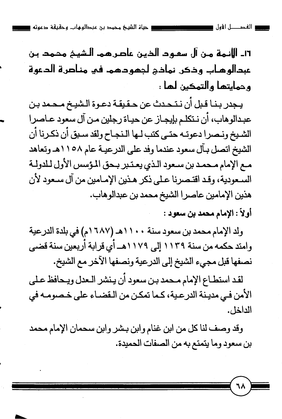 16- الأئمة من آل سعود الذين عاصرهم الشيخ محمد بن عبد الوهاب وذكر نماذج لجهودهم في مناصرة الدعوة وحمايتها والتمكين لها: