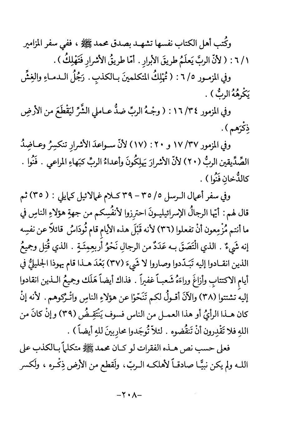 وكتب أهل الكتاب نفسها تشهد بصدق محمد صلى الله عليه وسلم، ففي سفر المزامير 1 / 6: (لأن الرب يعلم طريق الأبرار. أما طريق الأشرار فتهلك) .