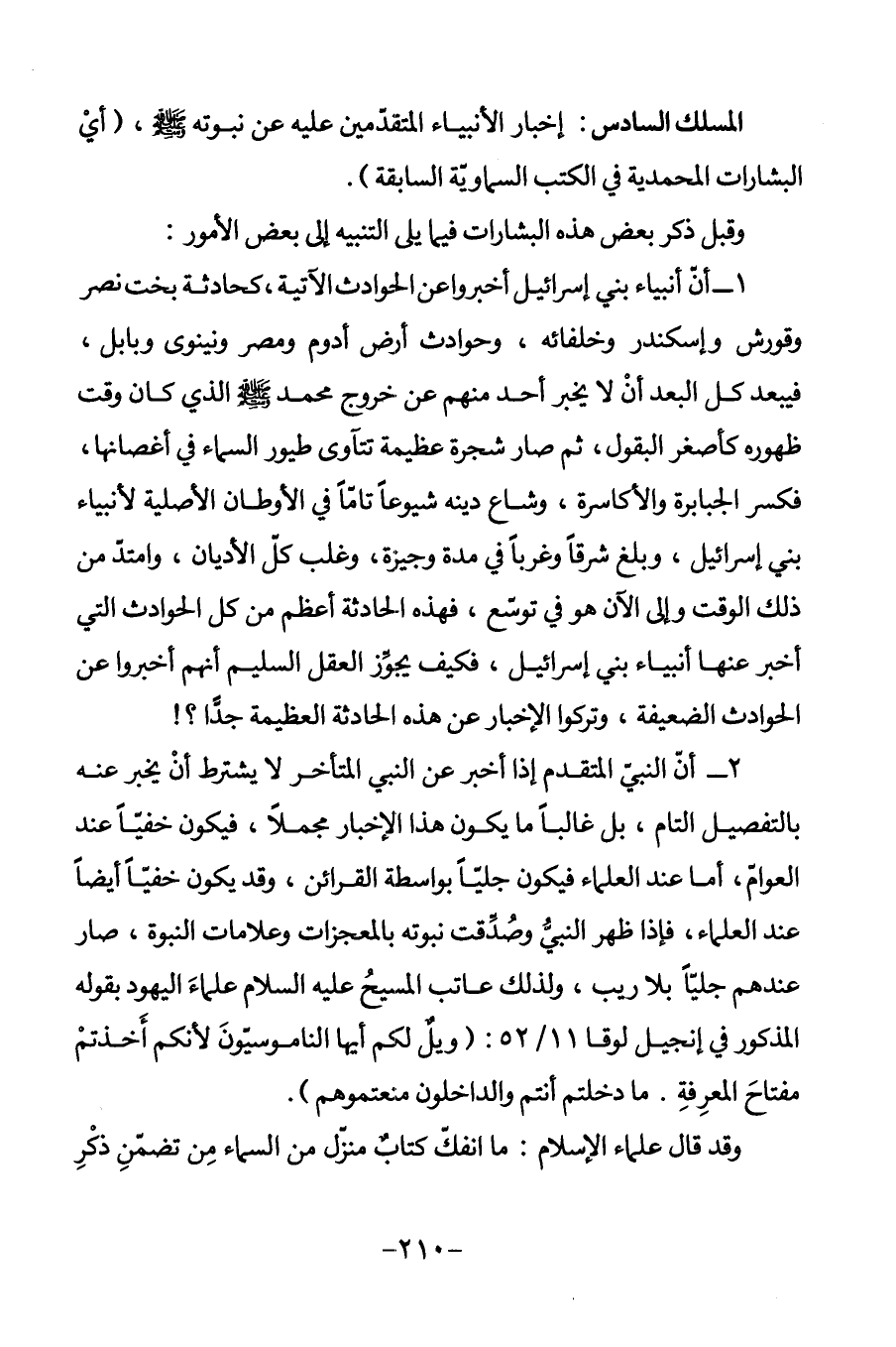 المسلك السادس إخبار الأنبياء المتقدمين عليه عن نبوته صلى الله عليه وسلم، (أي البشارات المحمدية في الكتب السماوية السابقة) .