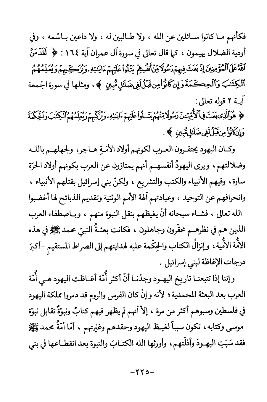 وإننا إذا تتبعنا تاريخ اليهود وجدنا أن أكثر أمة أغاظت اليهود هي أمة العرب بعد البعثة المحمدية؛ لأنه وإن كان الفرس والروم قد دمروا مملكة اليهود في فلسطين وسبوهم أكثر من مرة، إلا أنهم لم يظهر فيهم كتاب ونبوة تقابل نبوة موسى وكتابه، تكون سببا لغيظ اليهود وحقدهم وغيرتهم، أما أمة محمد صلى الله عليه وسلم فقد سبت اليهود وأذلتهم، وأورثها الله الكتاب والنبوة بعد انقطاعها في بني إسرائيل،