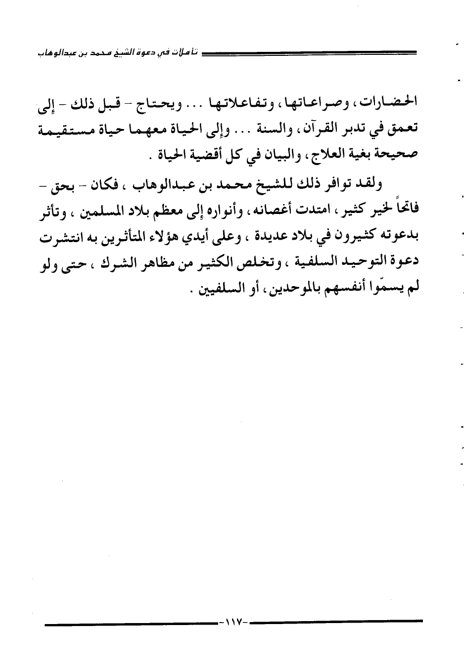 ولقد توافر ذلك للشيخ محمد بن عبد الوهاب، فكان -بحق- فاتحاً لخير كثير، امتدت أغصانه، وأنواره إِلى معظم بلاد المسلمين، وتأثر بدعوته كثيرون في بلاد عديدة، وعلى أيدي هؤلاء المتأثرين به انتشرت دعوة التوحيد السلفية، وتخلص الكثير من مظاهر الشرك، حتى ولو لم يسمّوا أنفسهم بالموحدين، أو السلفيين.