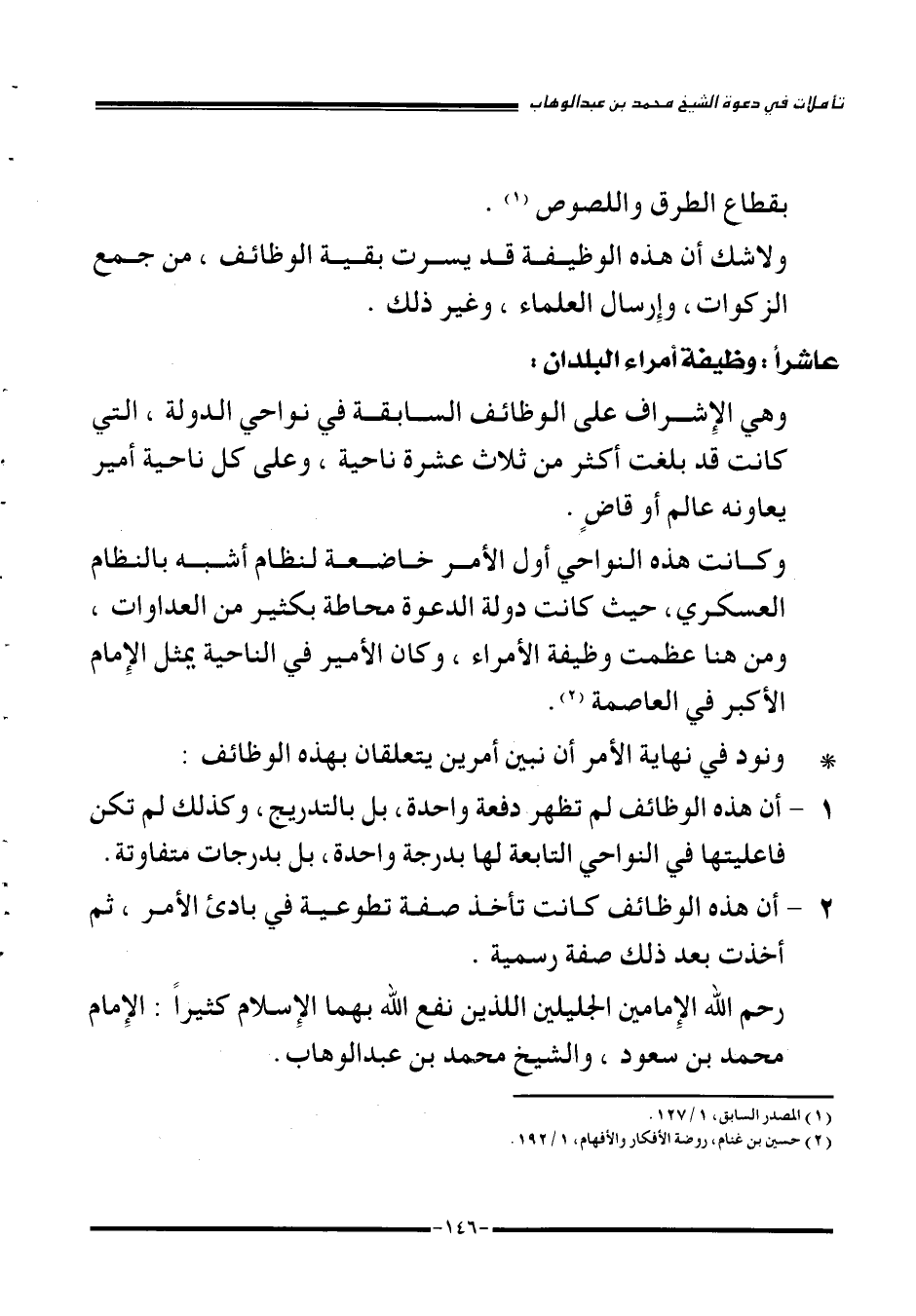 2 حسين بن غنام، روضة الأفكار والأفهام، 1/192.