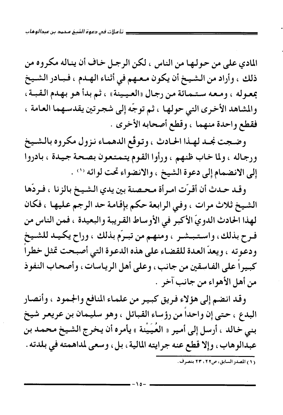 1 أمين السعيد: سيرة الإمام الشيخ محمد بن عبد الوهاب ص 22، 23 بتصرف.