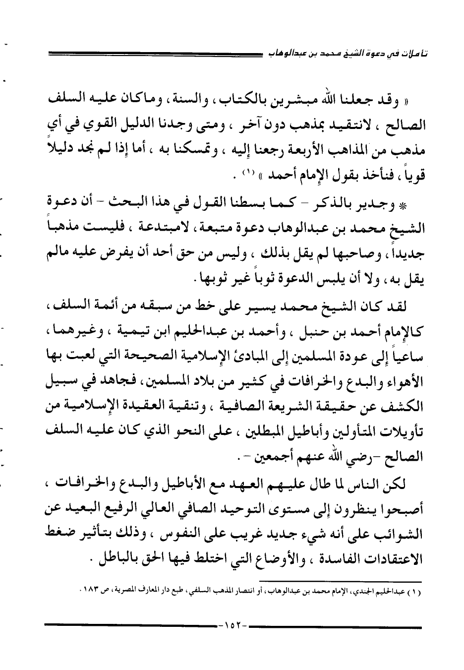 1 عبد الحليم الجندي، الإمام محمد بن عبد الوهاب، أو انتصار المذهب السلفي، طبع دار المعارف المصرية، ص183.