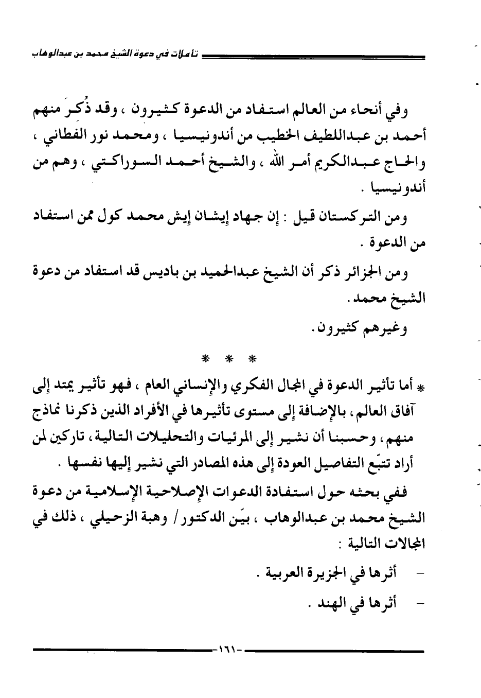 ومن الجزائر ذكر أن الشيخ عبد الحميد بن باديس قد استفاد من دعوة الشيخ محمد.