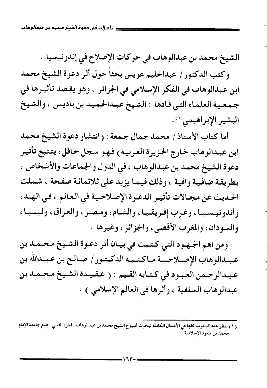1 تنظر هذه البحوث كلها في الأعمال الكاملة لبحوث أسبوع الشيخ محمد بن عبد الوهاب -الجزء الثاني- طبع جامعة الإمام محمد بن سعود الإسلامية.