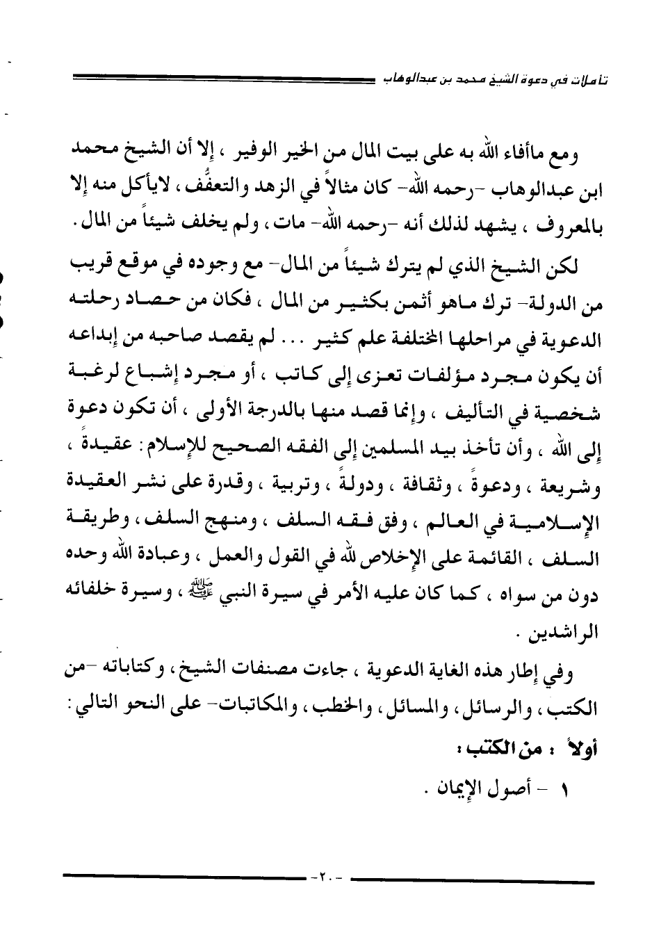 لكن الشيخ الذي لم يترك شيئا من المال -مع وجوده في موقع قريب من الدولة- ترك ما هو أثمن بكثير من المال، فكان من حصاد رحلته الدعوية في مراحلها المختلفة علم كثير لم يقصد صاحبه من إِبداعه أن يكون مجرد مؤلفات تعزى إِلى كاتب، أو مجرد إِشباع لرغبة شخصية في التأليف، وإِنما قصد منها بالدرجة الأولى، أن تكون دعوة إلى الله، وأن تأخذ بيد المسلمين إِلى الفقه الصحيح للإِسلام: عقيدة وشريعة ودعوة وثقافة ودولة وتربية، وقدرة على نشر العقيدة الإِسلامية في العالم، وفق فقه السلف، ومنهج السلف، وطريقة السلف، القائمة على الإِخلاص لله في القول والعمل، وعبادة الله وحده دون من سواه، كما كان عليه الأمر في سيرة النبي ـ صلّى الله عليه وسلّم ـ وسيرة خلفائه الراشدين.