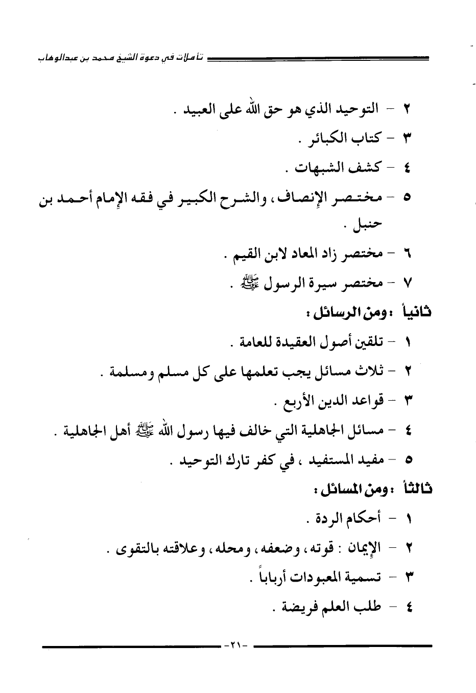 5- مفيد المستفيد، في كفر تارك التوحيد.