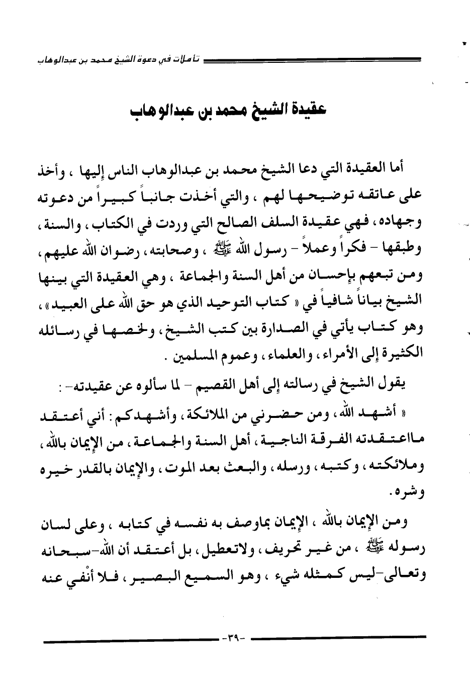 عقيدة الشيخ محمد بن عبد الوهاب