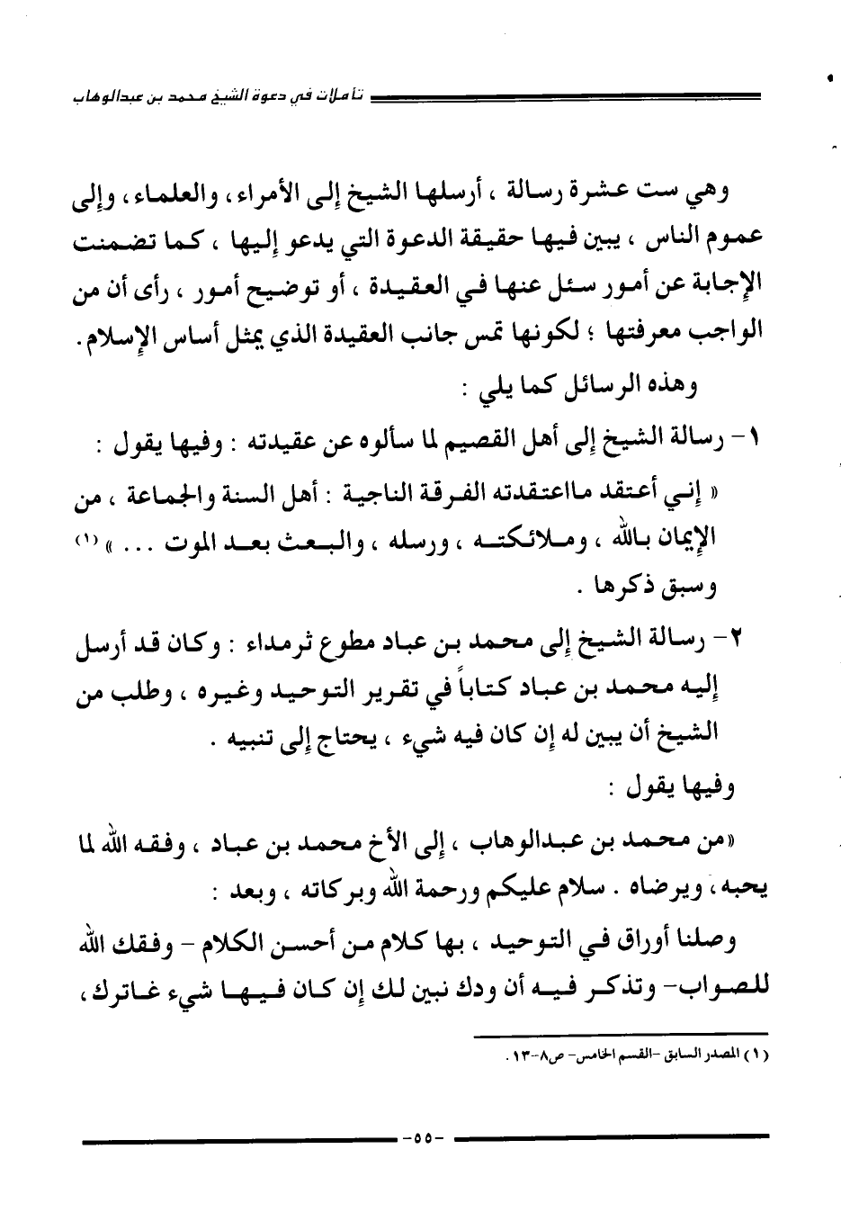 1 مؤلفات الشيخ -القسم الخامس- الرسائل الشخصية، ص 8-13.