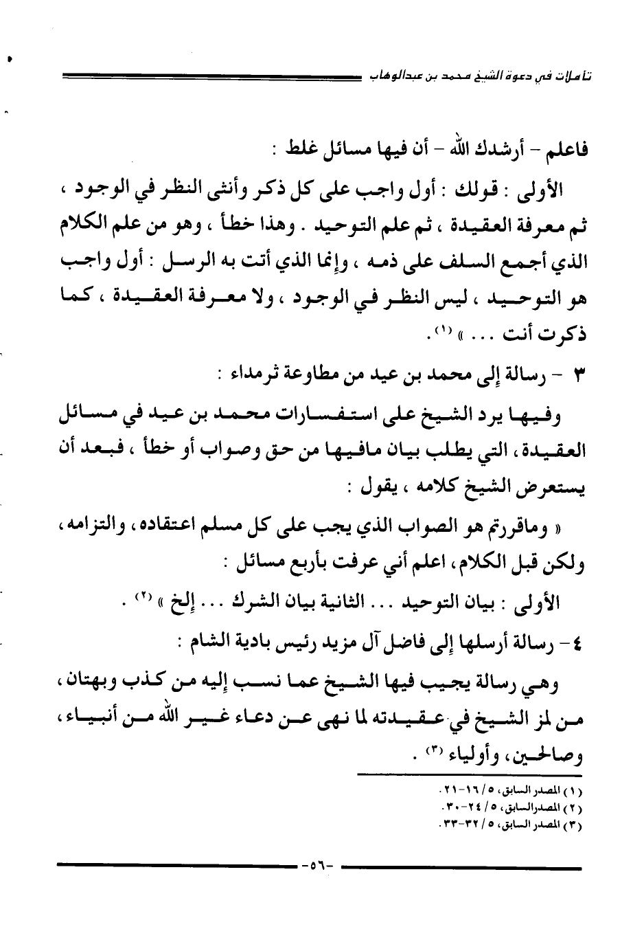 ((وما قررتم هو الصواب الذي يجب على كل مسلم اعتقاده، والتزامه، ولكن قبل الكلام، اعلم أني عرفت بأربع مسائل: