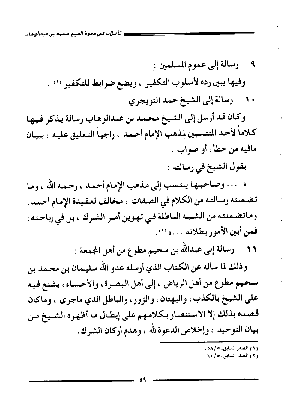 11- رسالة إلى عبد الله سحيم مطوع من أهل المجمعة:
