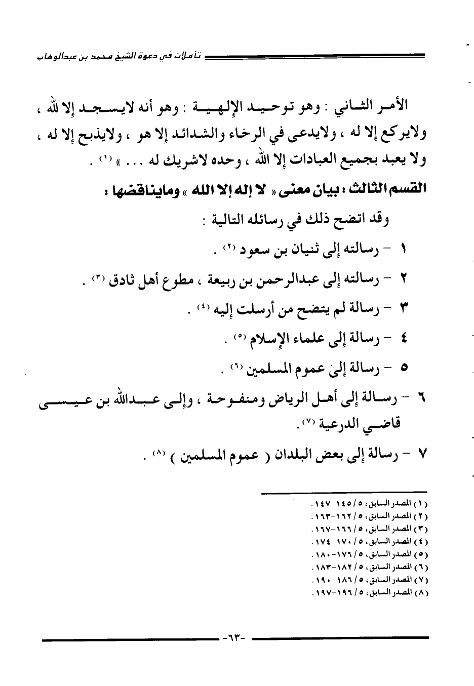 7- رسالة إِلى بعض البلدان (عموم المسلمين) 8.